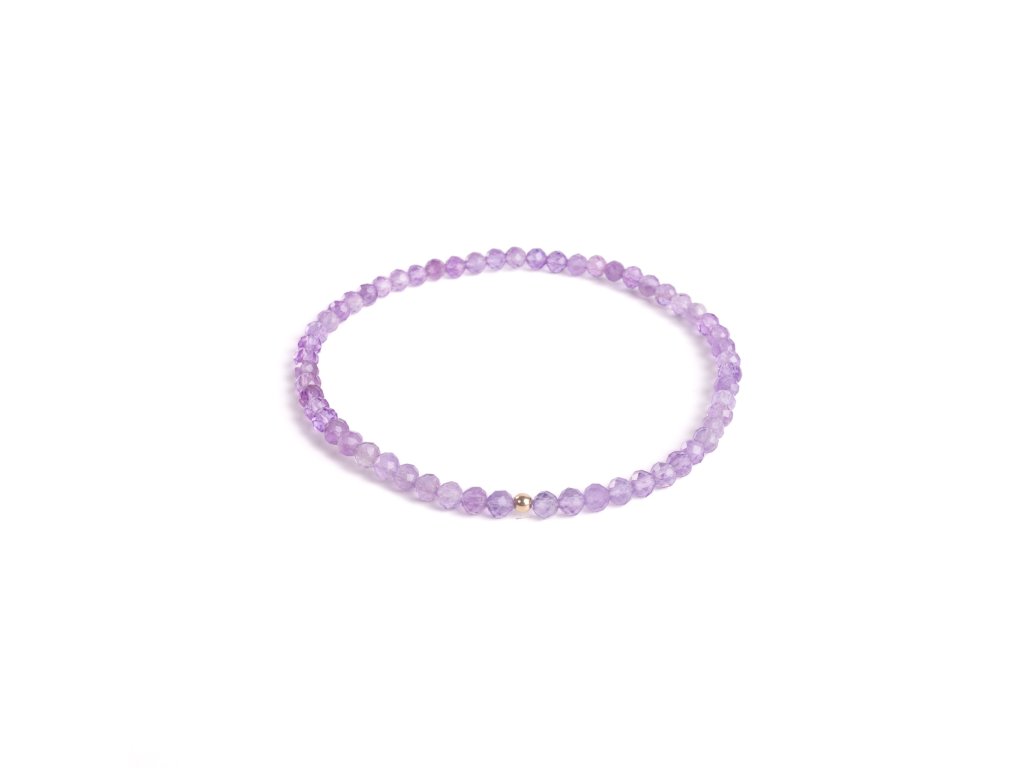 Ručně vytvořený ametystový náramek s kuličkou ze 14 kt žlutého zlata, který je velice pohodlný při nošení a doslova si jej zamilujete.