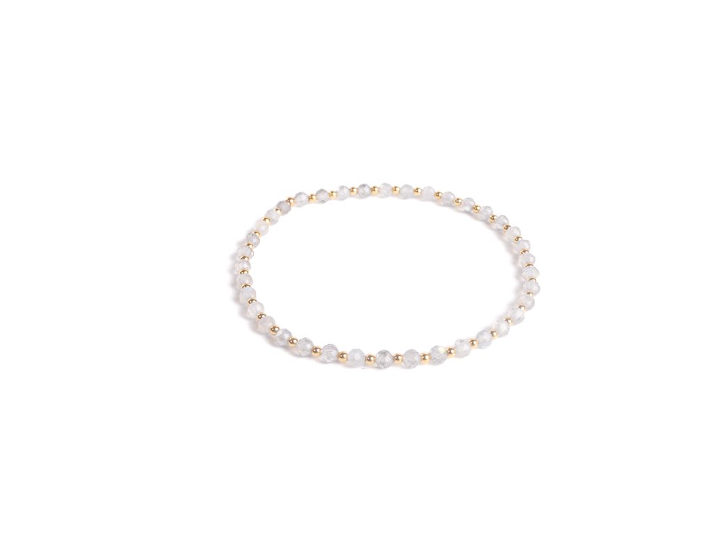 Ručně navléknutý labradoritový náramek s kuličkami ze 14 kt žlutého zlata, který je krásně kombinovatelný se všemi ostatními náramky.