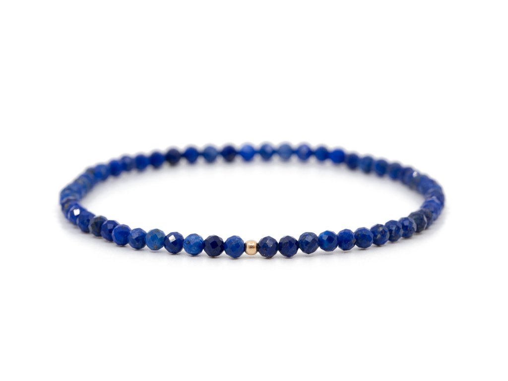 Ručně vytvořený náramek z lapisu lazuli s kuličkou ze 14 kt žlutého zlata, který je velice pohodlný při nošení a doslova si jej zamilujete.