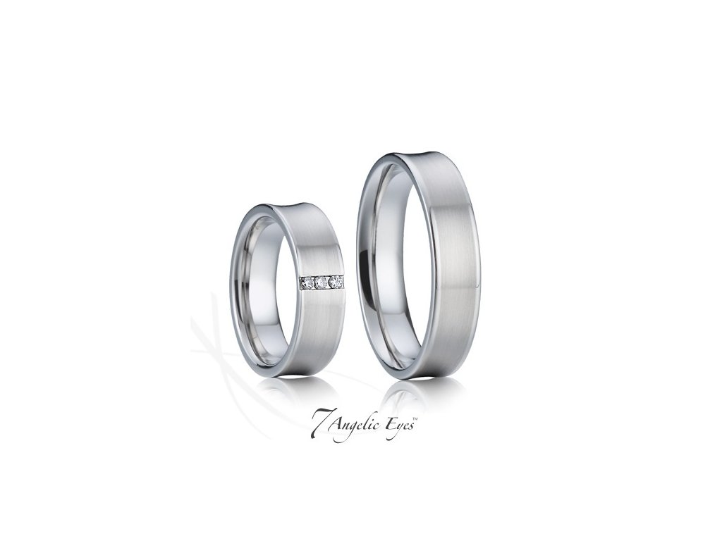 Snubní prsten z chirurgické oceli 316L má sametově matný povrch a šířku fazony 5,5 mm. Zdobí ho 3 ručně vsazované bílé vybroušené zirkony, které dodávají šperku jemný lesk.