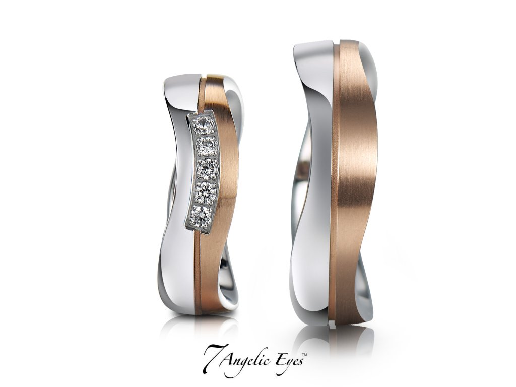 Snubní prsten z chirurgické oceli 316L se šířkou fazony 5,5 mm kombinuje matné růžové zlacení s chromovým vysokým leskem. Zdobí ho 5 ručně vsazovaných bílých zirkonů, které dodávají šperku elegantní a jemný třpyt.