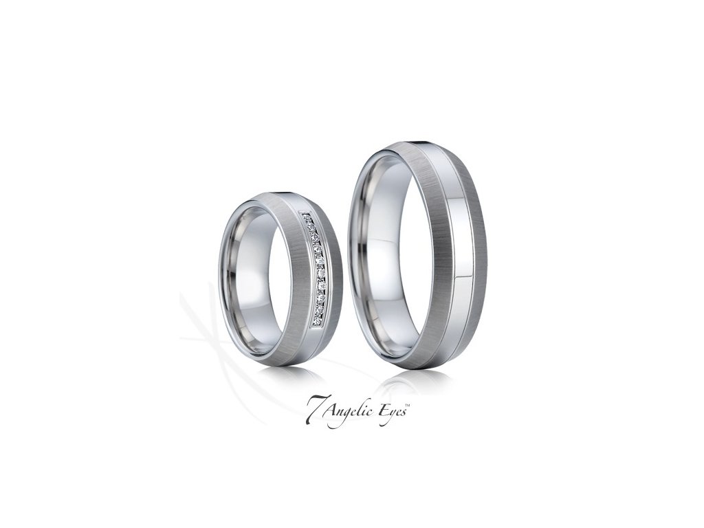 Snubní prsten z chirurgické oceli 316L kombinuje povrchovou úpravu broušeného matu s vysokým leskem pro elegantní kontrast. Šířka fazony je 6,5 mm, což podtrhuje jeho moderní design.