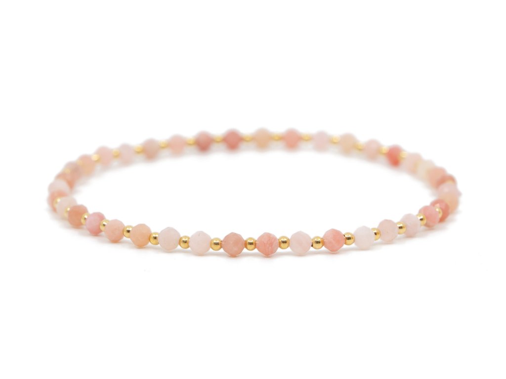 Krásný ručně navléknutý opálový náramek s kuličkami ze 14 kt žlutého zlata. Náramek je krásně kombinovatelný se všemi ostatními náramky.