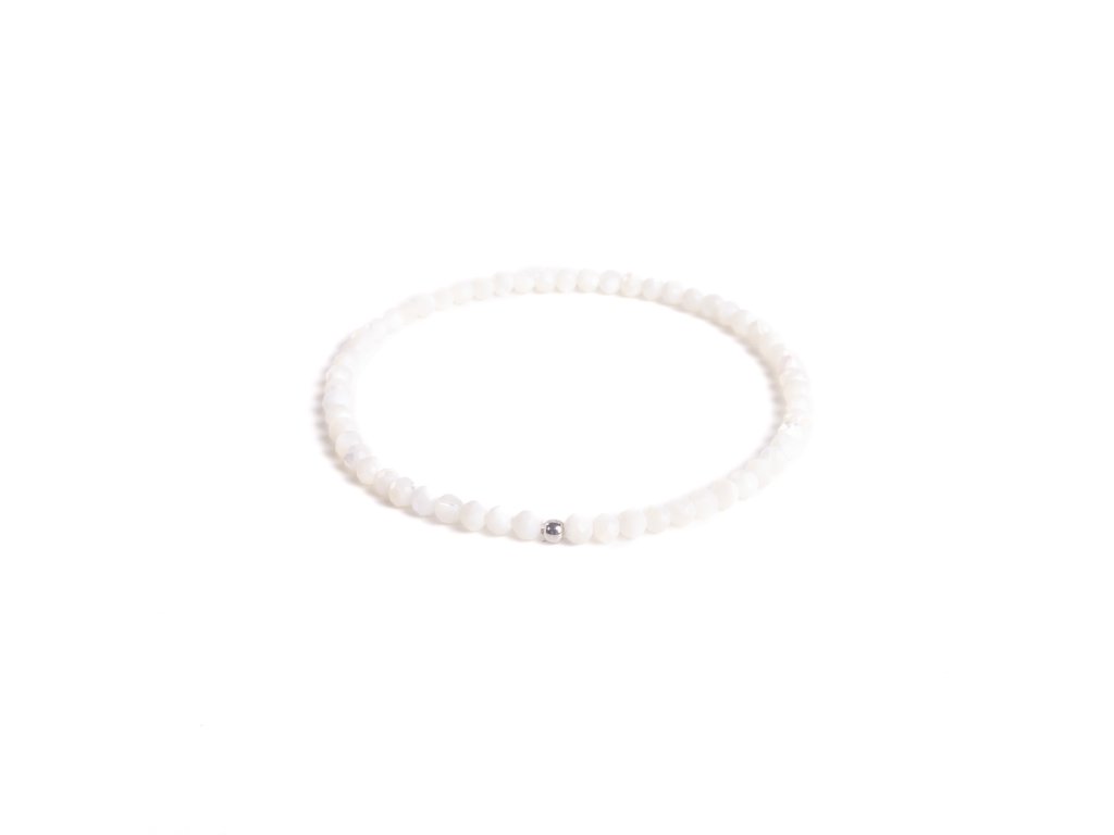 Ručně navlečený náramek z perleti s kuličkou z rhodiovaného stříbra si zamilujete na první dotek.
