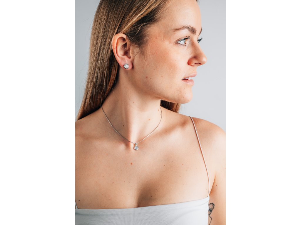 Jemná stříbrná souprava náušnic na puzetové zapínání a přívěsku je osázena měsíčním kamenem z Indie ve velikosti 6 mm. Kameny mají nejvyšší možnou kvalitu. Přívěsek je dodáván bez řetízku. Soupravu obdržíte zabalenou v dárkové krabičce a s certifikátem o původu drahých kamenů.