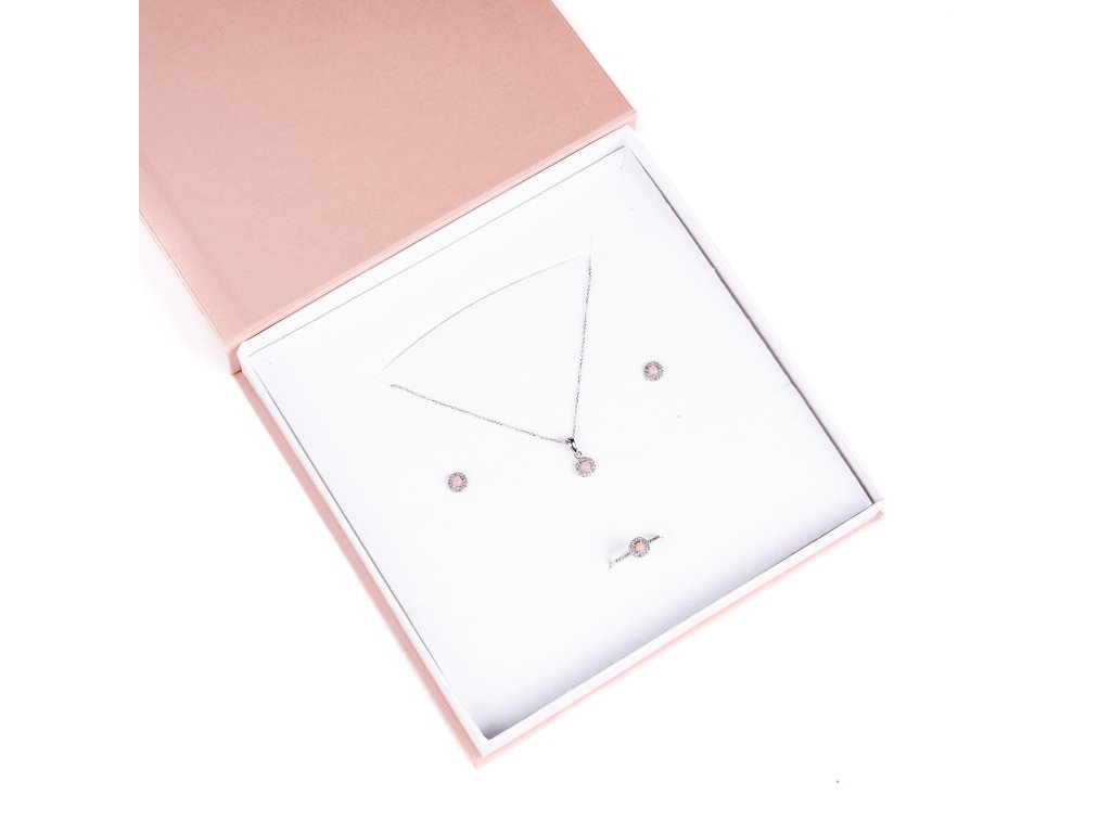 Stříbrná souprava náhrdelníku a náušnic s kamenem z topazu a opálu. Tato souprava Vás svou jemností nadchne.