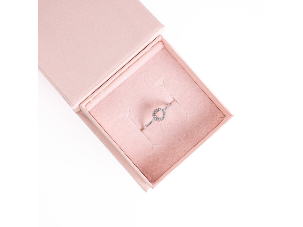 Prsten je osázen kamenem z peruánského růžového opálu ve velikosti 3,5 mm a bílými topazy z Nigérie. Kameny mají nejvyšší možnou kvalitu AAA. Šperk obdržíte zabalený v dárkové krabičce a s certifikátem o původu drahých kamenů.