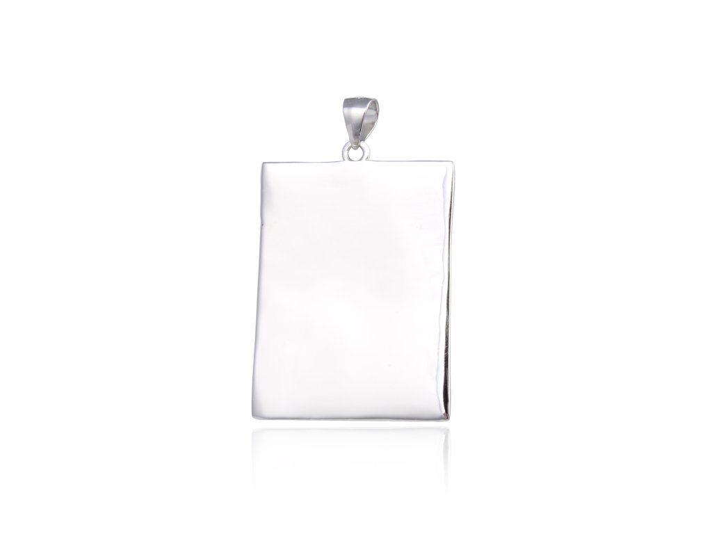 Přívěsek ve tvaru obdélníku je vyroben ze stříbra v ryzosti 925/1000 a je ve velikosti 32 x 25 mm. Přívěs se krásně leskne a je vysoce kvalitní. Šperk rádi opatříme rytinou dle vašeho přání, ať už obrázkem nebo nápisem. Přívěs s rytinou je dělaný na přání zákazníka, jedná se tedy o zakázkovou výrobu. Vyryté šperky nelze vrátit, ani vyměnit a je nutná platba předem.