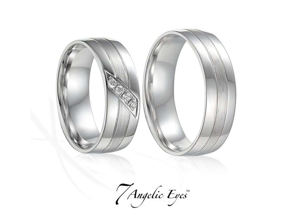 Tento snubní prsten je vyrobený z 14-ti karátového bílého zlata s vnitřním bombírováním (zaoblením) pro pohodlné každodenní nošení. Povrchová úprava prstenu je kombinací vysokého lesku s jemným matem. Snubní prsten je doplněný čtyřmi ručně vsazenými brilianty, které dokonale podtrhnou jeho krásu. Snubní prsten lze doplnit rytinou na vlastní přání.